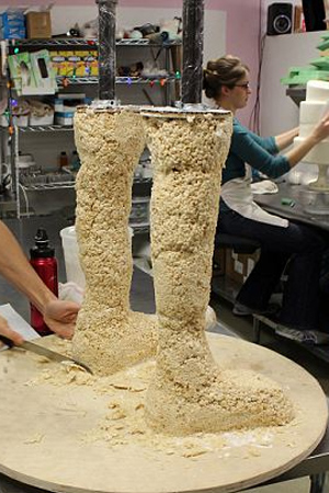 Το ζευγάρι χρειάστηκε δύο εβδομάδες για να φτιάξει τον γλυκό πολεμιστή που ζυγίζει 136 κιλά και για την παρασκευή του χρειάστηκαν 208 αυγά, 63 κιλά ζάχαρη και 24 κιλά marshmellows (ζαχαρωτά).
