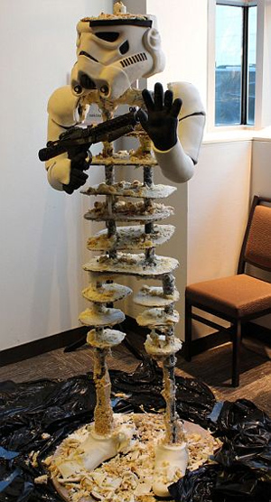 Το γλυκό-πολεμιστής έχει σιδερένιο υποστύλωμα και η δημιουργία του ήταν όνειρο ζωής για την Amanda και το σύζυγό της! «Χρειάστηκαν δύο εβδομάδες για να το φτιάξουμε, αλλά θέλαμε να σιγουρευτούμε ότι θα υπήρχαν άνθρωποι να το φάνε ώστε να μην χρειαστεί να το πετάξουμε» είπε ο Tiler Oakleaf.