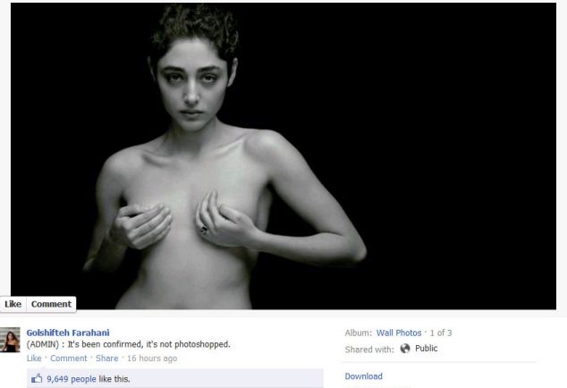 Το σφάλμα της Golshifteh Farahani ήταν ότι αποκάλυψε το στήθος της σε μια ασπρόμαυρη γαλλική ταινία μικρού μήκους με τίτλο «Corps et Âmes», καθώς και προχώρησε σε μια φωτογράφηση στο περιοδικό «Madame Le Figarο», όπου καλύπτει με τα χέρια της το στήθος της.