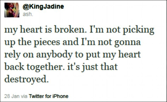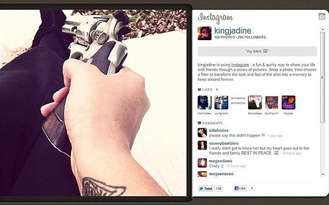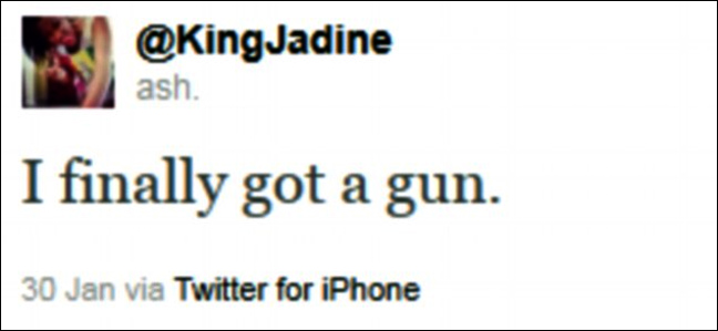 Έτσι σε λίγη ώρα έγραψε στο twitter: «Επιτέλους βρήκα ένα όπλο» . Στη συνέχεια ανέβασε μία φωτογραφία όπου φαίνεται ένα όπλο και με το οποίο πιθανότατα έβαλε τεός στη ζωή της.