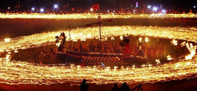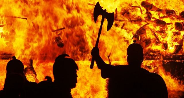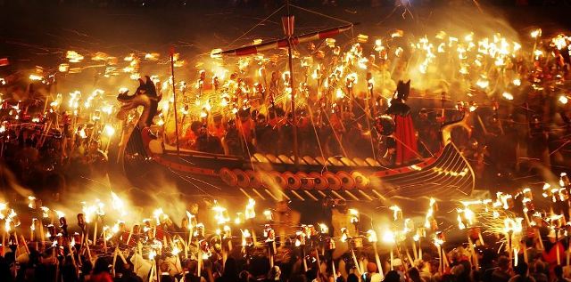 Οι κάτοικοι της πόλης Lerwick των νησιών Σέτλαντ της Σκωτίας μεταφέρθηκαν για μία μέρα στις εποχές του Μεσαίωνα και των Βίκινγκς εξαιτίας των εορτασμών για το φεστιβάλ φωτιάς Up Helly Aa, που θεωρείται το μεγαλύτερο της Ευρώπης.