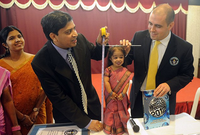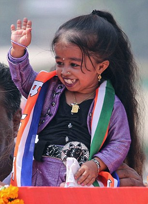 Η πιο κοντή του κόσμου μπαίνει στον μεγάλο και δύσκολο χώρο της πολιτικής. Η Ινδή Jyoti Amge με ακριβές ύψος 62,8 εκατοστά συμμετείχε στην εκλογική εκστρατεία του κόμματος Maharashtra Navnirman Sena για τις εκλογές στη Mumbai.
