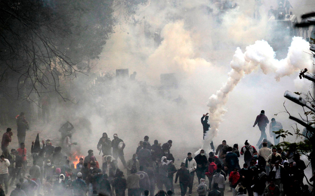 Συνεχίζονται έως και αυτή την ώρα οι συμπλοκές στην πρωτεύουσα ανάμεσα σε διαδηλωτές και την αστυνομία με τον αριθμό των τραυματιών να έχουν φθάσει τους 1.051 έξω από το υπουργείο Εσωτερικών, όπως μεταδίδει το αραβικό τηλεοπτικό δίκτυο, Αλ Αραμπίγια.