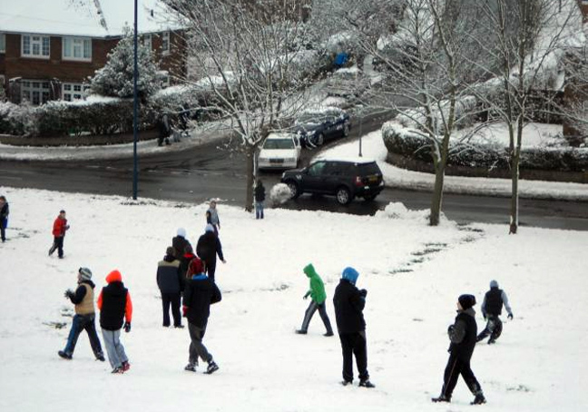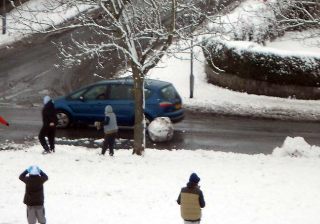 Περίπου 20 πιτσιρικάδες παίζοντας με το χιόνι έφτιαχναν τεράστιες χιονόμπαλες οι οποίες κατέληγαν σε πολυσύχναστο δρόμο του Gravesend στο Kent. Επιπλέον τα παιδιά πετούσαν χιόνι στα διερχόμενα αμάξια.
