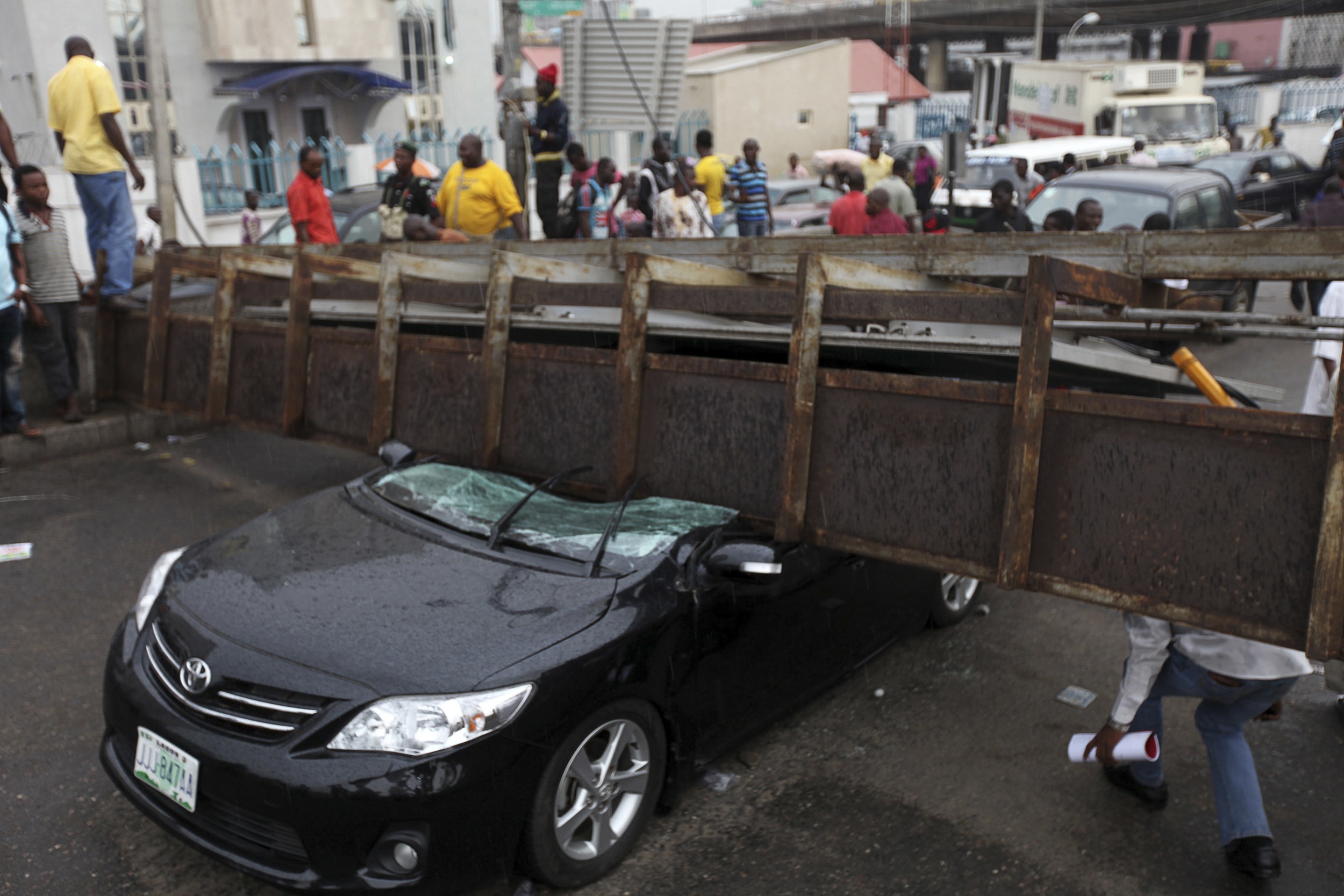 Η φωτογραφία μιλά από μόνη της! Η συγκεκριμένη πινακίδα που βρισκόταν σε δρόμο του Λάγος στη Νιγηρία έπεσε, εν μέσω νεροποντής, τη στιγμή που περνούσε από κάτω ένα αυτοκίνητο.