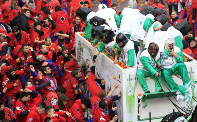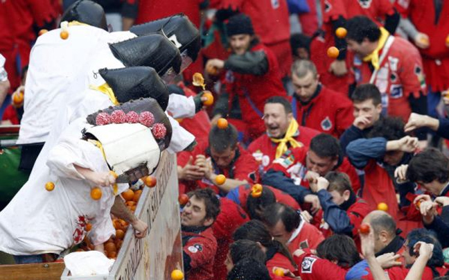 Ο λόγος για το 3ήμερο φεστιβάλ «Battaglia delle Arance» (Μάχη των Πορτοκαλιών) που όπως κάθε χρόνο το Φεβρουάριο, έτσι και φέτος διοργανώθηκε στην Βόρεια Ιταλία, στην πόλη της Ivrea.