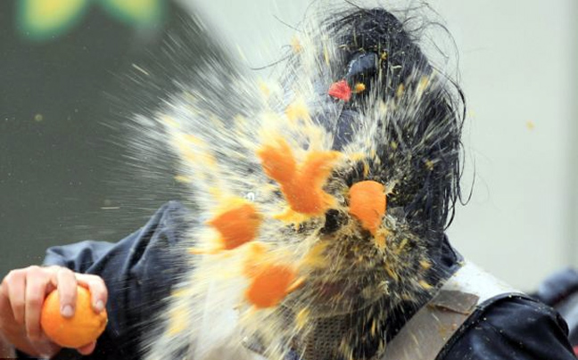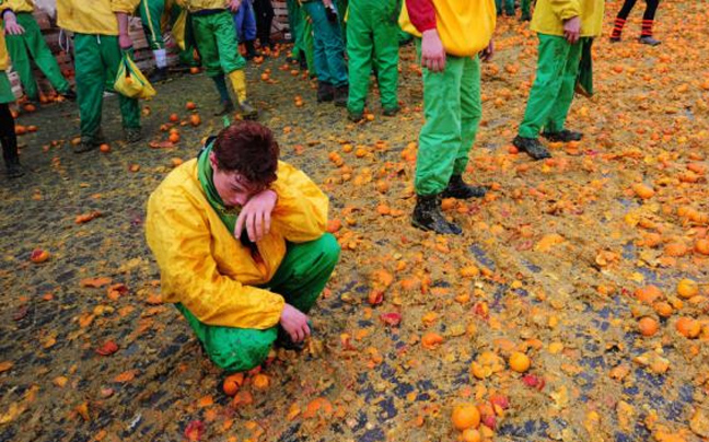 Τα πορτοκάλια μετατρέπονται σε πολεμοφόδια και η μάχη που ξεσπάει είναι ιδιαίτερα σκληρή. Το γνωστό φρούτο, δεν είναι και τόσο αθώο αφού πολλοί από τους συμμετέχοντες αποχωρούν τραυματισμένοι και γεμάτοι μώλωπες από το πεδίο της μάχης.