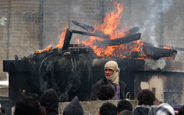 Περίπου 2.000 Αφγανοί συγκεντρώθηκαν χθες Τρίτη έξω από τις πύλες της αεροπορικής βάσης Μπαγκράμ, αρχηγείο των ΝΑΤΟϊκών δυνάμεων, 60 χιλιόμετρα βόρεια της Καμπούλ, διαμαρτυρόμενοι για τα καμένα αντίτυπα του Κορανίου που βρέθηκαν στα σκουπίδια.