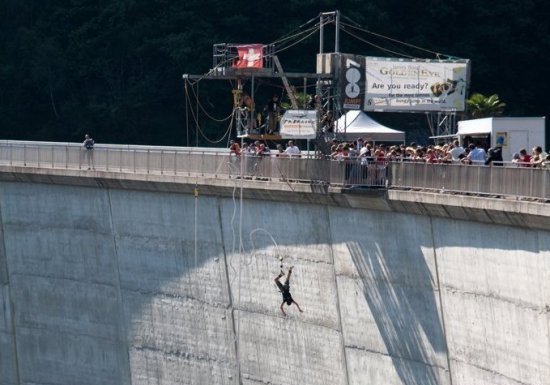 Το «Goldeneye Bungee» στην Ελβετία έγινε γνωστό από την ταινία «Golden Eye» του James Bond και από τότε έχει γίνει δημοφιλείς προορισμός για τους λάτρεις του bungee jumping. Είναι το κατάλληλο μέρος για τον αρχάριο στο άθλημα και η θέα των βουνών είναι μαγευτική.