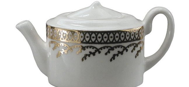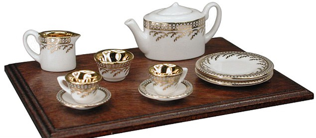 Το μεγαλύτερο κομμάτι του σερβίτσιου, η τσαγιέρα, φτάνει τα 14 χιλιοστά και είναι ρέπλικα τσαγιέρας του 1795.