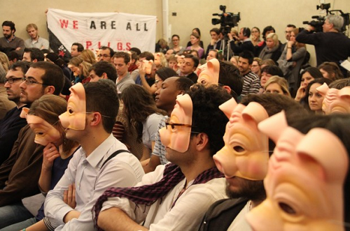 «Δεν μου αρέσει η λέξη PIGS, επειδή μπορεί να σχετιστεί με δυσάρεστα πράγματα. Ποιοι είναι οι PIGS; Δεν μου αρέσει αυτό» είπε στους φοιτητές που σφύριζαν και τον αποδοκίμασαν.