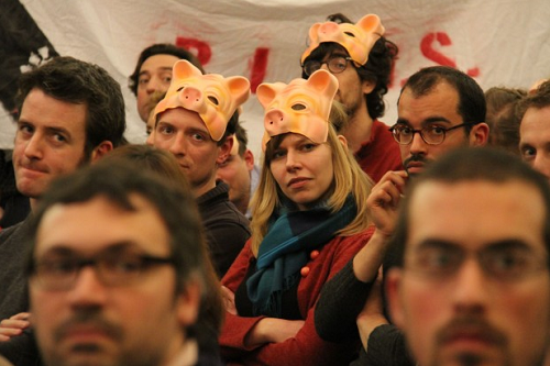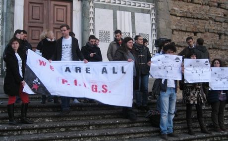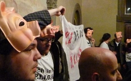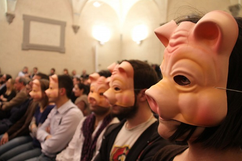 Ομάδα ιταλών φοιτητών, φορώντας μάσκες γουρουνιών, αποδοκίμασε τον υπουργό Οικονομικών της Γερμανίας, κάτι που έβγαλε έξω από τα ρούχα του τον Βόλφγκανγκ Σόιμπλε.
