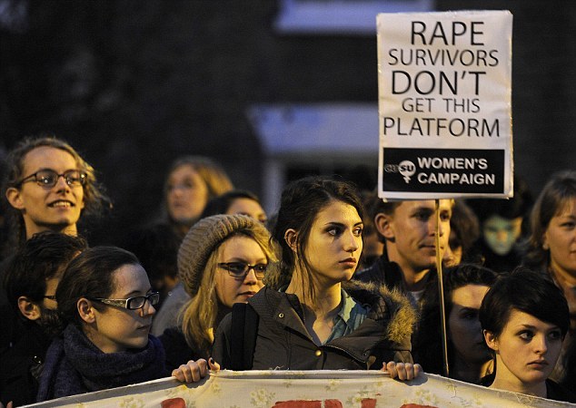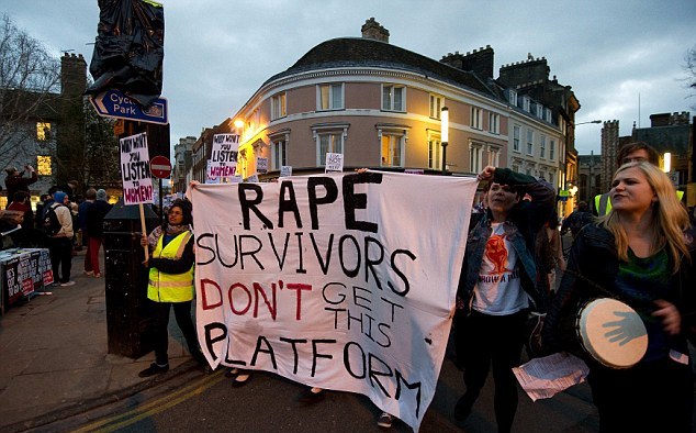 Περίπου 200 άτομα είχαν συγκεντρωθεί κοντά στην έδρα της φοιτητικής ένωσης Cambridge Union, που οργανώνει την εκδήλωση, και φώναζαν συνθήματα όπως «Φύγε, δικαιοσύνη για την Ντιαλό», την καμαριέρα που τον κατηγόρησε για σεξουαλική επίθεση πέρσι το καλοκαίρι.