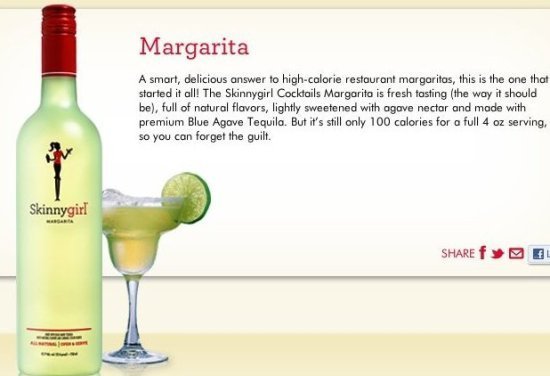 Η εταιρεία Bethenny Frankel αποκάλεσε το ποτό του «Skinnygirl Margaritas» και το περιγράφει ως μια έξυπνη και γευστική επιλογή που μοιάζει με τις μαργαρίτες μαγαζιών αλλά με λίγες θερμίδες.