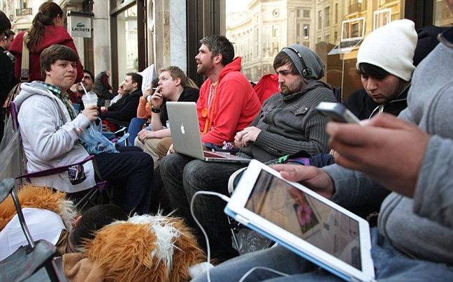 Ο 18χρονος φίλος του περιμένει δίπλα του από το… Σάββατο! «Ήθελα να είμαι ένας από τους πρώτους που θα το πάρουν στα χέρια τους», είπε. «Μερικές φορές είναι δύσκολο τη νύχτα, κάνει πραγματικά πολύ κρύο αλλά θα είναι τέλεια όταν θα κρατάω θριαμβευτικά το iPad στα χέρια μου».
