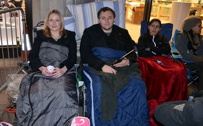 Στην ουρά υπάρχουν και κάποιοι που δεν τον ζουν αυτό για πρώτη φορά. Ο 22χρονος Χάρι είχε ξενυχτήσει με τη φίλη του στο δρόμο και για το iPad 2. «Περάσαμε τόσο ωραία την τελευταία φορά που περιμέναμε, που αποφασίσαμε να τον κάνουμε ξανά. Έχω όμως εξαντληθεί, κοιμήθηκα μόλις 45 λεπτά.