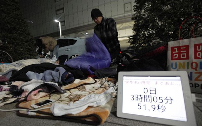 Στην αγορά αρχίζει από σήμερα να διατίθεται το νέο iPad και οι φανατικοί της Apple σε όλο τον κόσμο δεν δίστασαν να περάσουν μερόνυχτα στο δρόμο, έξω από τα καταστήματά της, για να εξασφαλίσουν τη νέα εξελιγμένη ταμπλέτα.
