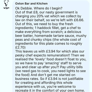 Και ποιος δεν θέλει να πιάνουν τόπο τα λεφτά του όταν τρώει έξω; Όλοι προφανώς, αν και πρέπει πρώτα να συμφωνήσουμε τι είναι φτηνό και τι ακριβό. Ένα κυρίως πιάτο 9 ευρώ είναι για κάποιους φυσιολογική τιμή, όχι όμως και για την κυρία της ιστορίας μας, η οποία θεώρησε αυτές τις 8 λίρες (9 ευρώ) που δαπάνησε για να φάει ψάρι και πατάτες σε εστιατόριο της Αγγλίας ιδιαιτέρως δυσβάσταχτο ποσό.
