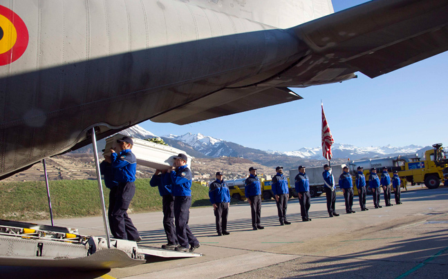 Το πρώτο C-130 του βελγικού στρατού, το οποίο μεταφέρει τις σορούς των θυμάτων του τραγικού δυστυχήματος στην Ελβετία, προσγειώθηκε σήμερα το πρωί στην αεροπορική βάση του Μέλσμπρεκ κοντά στις Βρυξέλλες.