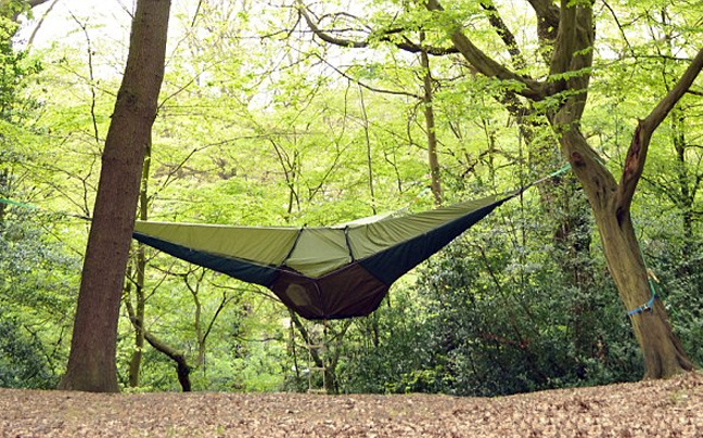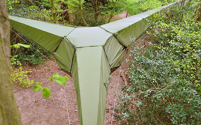 Μπορεί να φιλοξενήσει έως οκτώ ανθρώπους, σηκώνει βάρος έως πέντε τόνους και κοστίζει περίπου εννέα χιλιάδες ευρώ. Το ιδιαίτερο χαρακτηριστικό της σκηνής αυτής είναι πως μπορεί να… αιωρείται κρεμασμένη από δέντρα, κι αυτό μπορεί να είναι σωτήριο σε περιπτώσεις φυσικών καταστροφών.