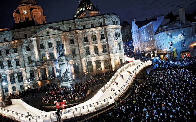 Η ιστορική συνοικία της καναδικής πόλης, Κεμπέκ, φιλοξένησε το Σαββατοκύριακο τη τελική φάση του παγκοσμίου πρωταθλήματος παγοδρομίας «Red Bull Crashed Ice».
