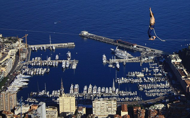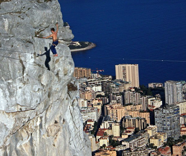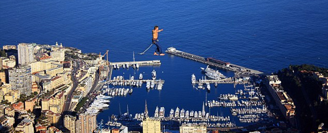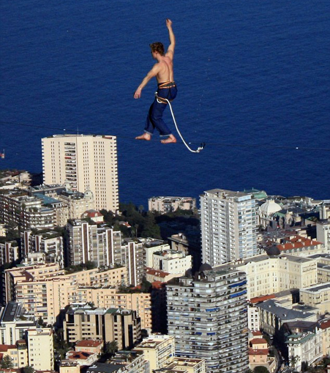 Πόσο ωραίο θα δείχνει το Μονακό από ψηλά! Δεν ξέρουμε αν προλαβαίνει να θαυμάσει το τοπίο κάτω από τα πόδια του ο 23χρονος Mich Kemeter, καθώς ισορροπεί πάνω σε ένα σχοινί με πλάτος περίπου 2,5 εκατοστών και διασχίζει την πόλη από… ψηλά.