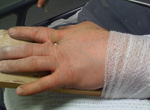Ο 46χρονος άντρας έκανε επισκευές στο σπίτι του στο Market Drayton του Shropshire, όταν ξαφνικά γλίστρησε στις σκάλες και κατά λάθος κάρφωσε ένα καρφί μήκους 12,7 εκατοστών στο αριστερό του χέρι.
