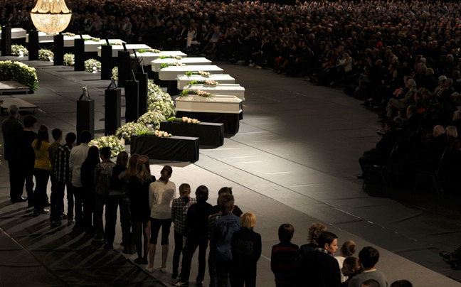 Άλλοι 10.000 άνθρωποι συγκεντρώθηκαν έξω από το κτίριο όπου γινόταν η τελετή. Εκτός των οικογενειών, των φίλων και των συμμαθητών των θυμάτων, παρέστη ο Βέλγος πρωθυπουργός Έλιο Ντι Ρούπο, ο μονάρχης Αλβέρτος Β’ και η σύζυγός του Πάολα, η πρόεδρος της Ελβετίας Έβελιν Βίντμερ-Σλουμπφ, ο πρόεδρος της ΕΕ Χέρμαν Βαν Ρόμπαϊ, ο Ολλανδός πρωθυπουργός Μαρκ Ρούτε κι ο Ολλανδός πρίγκιπας διάδοχος Βίλεμ-Αλεξάντερ και η σύζυγός του.