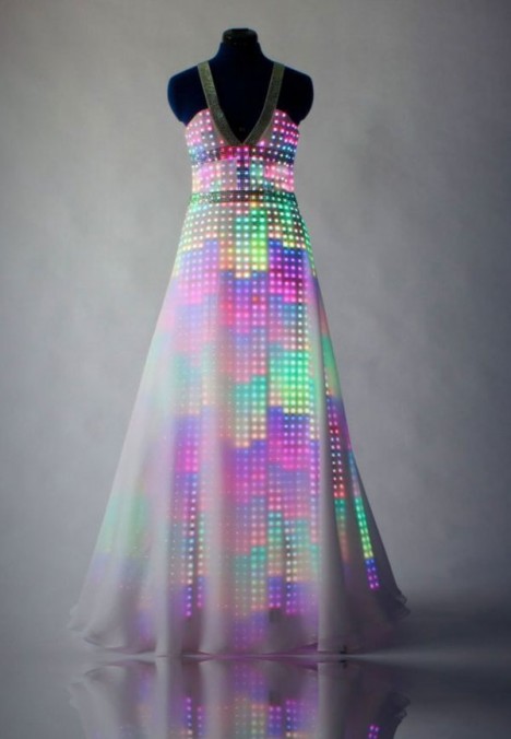 Το φόρεμα με το όνομα «Aurora» (αυγή) της εταιρείας CuteCircuit έχει σχεδιαστεί από εκατοντάδες κρυστάλλους Svarovski ενώ περιλαμβάνει και τεχνολογία LED για να είστε σίγουρες ότι θα τραβήξετε πάνω σας όλα τα βλέμματα!