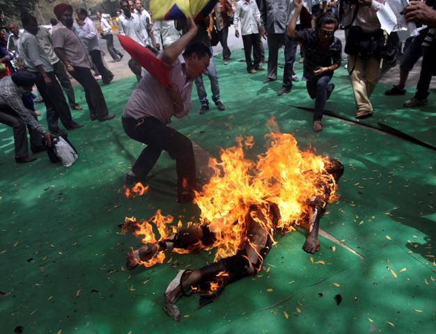 Ένας διαδηλωτής από το Θιβέτ αυτοπυρπολήθηκε, διαμαρτυρόμενος για την επίσκεψη του προέδρου της Κίνας, Hu Jintao, στην Ινδία.