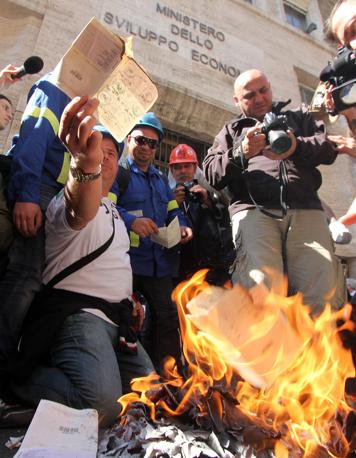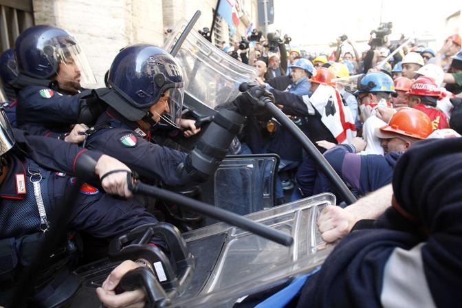 Όταν τριακόσιοι πενήντα εργάτες προσπάθησαν να πλησιάσουν στην έδρα του υπουργείου Οικονομικής Ανάπτυξης, στην κεντρική οδό Via Veneto, άρχισαν συμπλοκές με την αστυνομία.