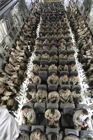 Αναρωτιέται κανείς αν γνωρίζουν τι ακριβώς πηγαίνουν να αντιμετωπίσουν οι Αμερικανοί στρατιώτες που απαθανατίστηκαν λίγο πριν απογειωθούν από την αμερικανική βάση στην περιοχή Manas του Κιργιστάν με προορισμό το Αφγανιστάν.