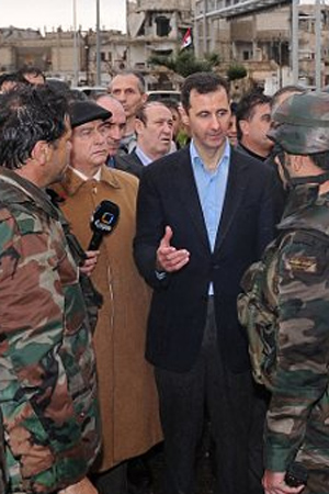 Στην πόλη Χομς που βομβαρδίστηκε ανηλεώς από τις συριακές δυνάμεις και πολιορκήθηκε με αποτέλεσμα πολίτες να χάνουν τη ζωή τους εμφανίστηκε ο Σύρος πρόεδρος Μπασάρ Αλ Άσαντ