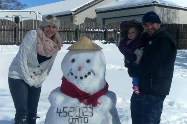 Το ζευγάρι απεικονίζεται στην αυλή της κατοικίας του στο Άλφορντ της Σκωτίας, όπου σε μία νύχτα το χιόνι ξεπέρασε τους 25 πόντους. Οι δύο νικητές πλέουν σε πελάγη ευτυχίας, όπως είναι φυσικό, και φανερώνουν τη χαρά τους δημιουργώντας έναν χιονάνθρωπο, ο οποίος στο σώμα του αποκαλύπτει το αμύθητο ποσό.