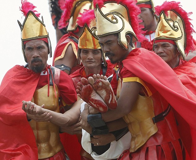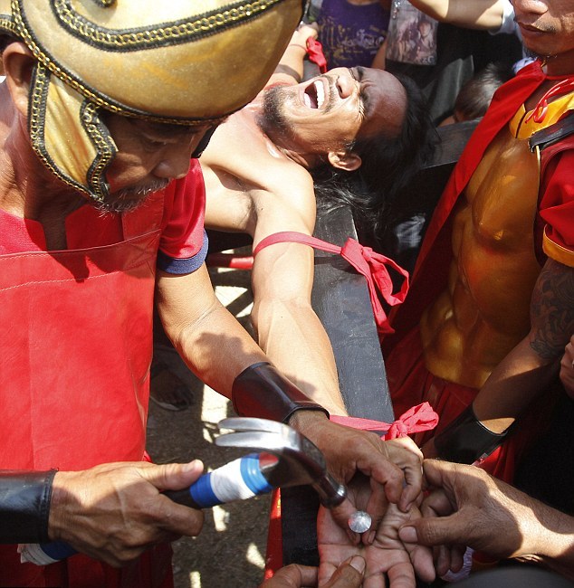 Εννιά άντρες σταυρώθηκαν στο χωριό San Pedro Cutud που βρίσκεται στην επαρχία Pampanga και οκτώ ακόμη σε γειτονικά χωριά.