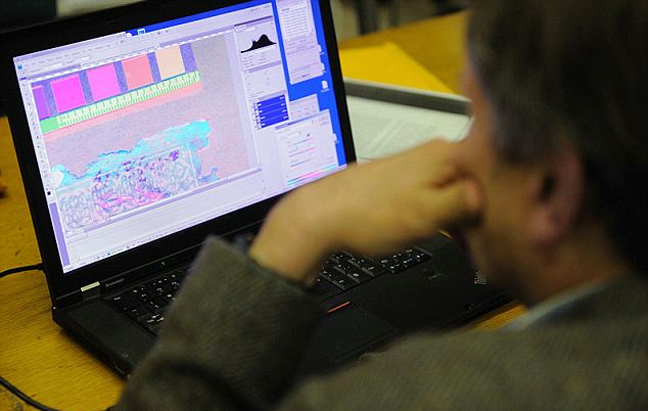 Ο Gregory Heyworth, αναπληρωτής καθηγητής της αγγλικής φιλολογίας του Πανεπιστημίου του Μισισιπή, ο οποίος ανέπτυξε τη καινοτομική φωτογραφική μηχανή και ένα σύστημα πολυφασματικού φωτισμού, ευελπιστεί να εξακριβώσει την αυθεντικότητα της υπογραφής.