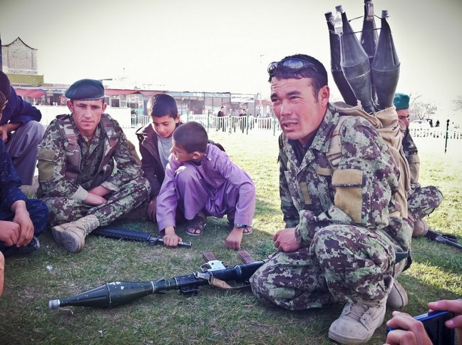 Τα παιδιά στο Αφγανιστάν είναι απόλυτα εξοικειωμένα με τα όπλα. Θαυμάζουν τους στρατιώτες. Επίσης οι σχολικές αίθουσες είναι περιορισμένες.
