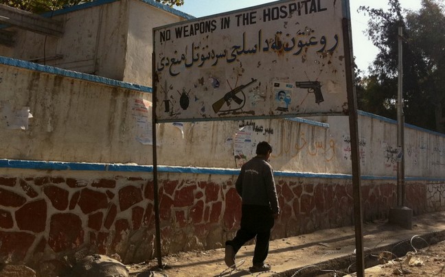 «Απαγορεύονται τα όπλα στο νοσοκομείο», γράφει η ταμπέλα. Χρειάζεται να γίνει διακριτό μέσω σήματος κάτι… αυτονόητο.