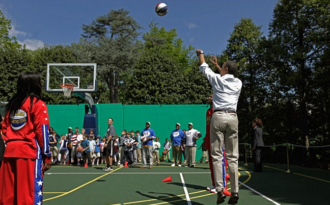Ο Αμερικανός πρόεδρος βρήκε λόγο χρόνο και για το αγαπημένο του άθλημα, το μπάσκετ.