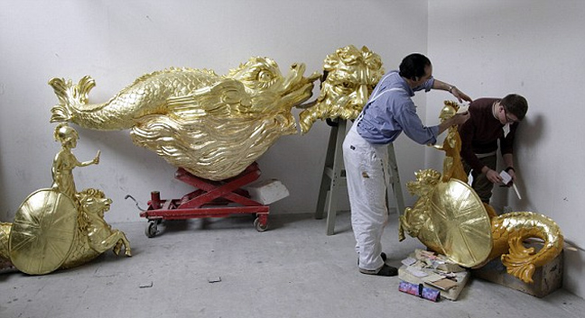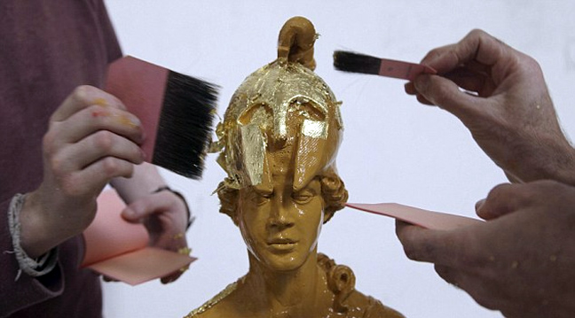 Τα επίχρυσα γλυπτά προετοιμάζονται ειδικά για τη φαντασμαγορική εκδήλωση της 3ης Ιουνίου.
