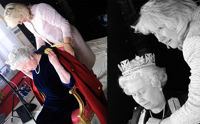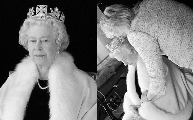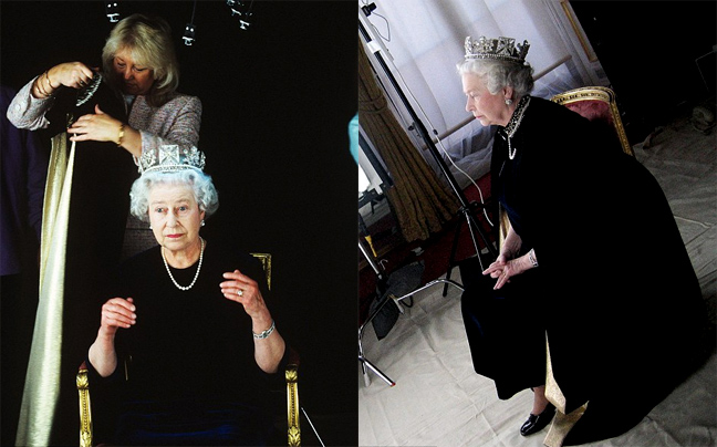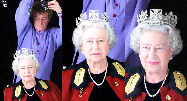 Για να δημιουργήσει το τελικό πορτρέτο, ο καλλιτέχνης συνέλεξε 10.000 φωτογραφίες της Βασίλισσας, κατά τη διάρκεια δύο συνεδριάσεων στα Ανάκτορα του Μπάκιγχαμ. Εν τω μεταξύ, η Nina Duncan τράβηξε αυτές τις προσωπικές φωτογραφίες που παρατίθενται παρακάτω.