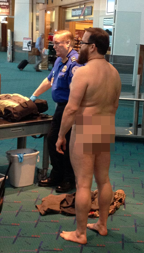 Αργότερα είπε στην αστυνομία πως ταξίδευε τακτικά και γδύθηκε σε ένδειξη αντίδρασης για τον τρόπο με τον οποίο του έγινε σωματικός έλεγχος.