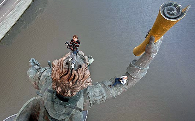 Αναζητώντας το καλύτερο φόντο και την καλύτερη πόζα, οι νεαροί έχουν σκαρφαλώσει σε αγάλματα, γέφυρες και γερανούς σε διάφορες πόλεις της Ρωσίας.
