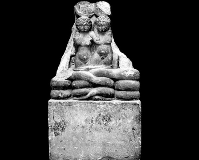 «Διακρίνονται ξεκάθαρα δύο γυμνά παιδιά, ένα αρσενικό και ένα θηλυκό, πανομοιότυπου μεγέθους , τα οποία στέκονται ανάμεσα σε δύο κολώνες με φίδια. Η κάθε μια φιγούρα έχει περασμένο το χέρι της στον ώμο της άλλης ενώ με το άλλο χέρι κρατούν από ένα φίδι» είπε η Τζιουζεπίνα Καπριότι στο Discovery.