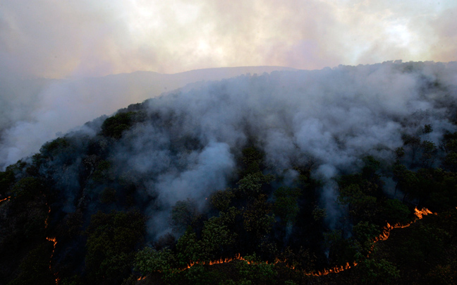 Από το Σάββατο που ξέσπασε έχει κάψει τουλάχιστον τριάντα τετραγωνικά χιλιόμετρα.
