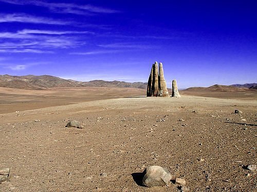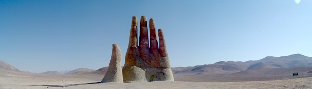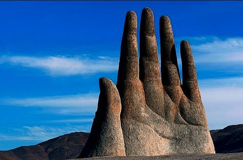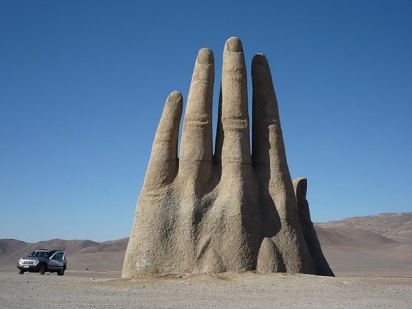 Το εντυπωσιακό γλυπτό του χιλιανού καλλιτέχνη Mario Irarrázabal απεικονίζει το πάνω τμήμα μιας ανθρώπινης -μεγάλων διαστάσεων- παλάμης που «βγαίνει» στη μέση μιας αχανής έκτασης στην έρημο Ατακάμα της Χιλής.