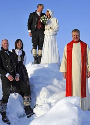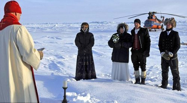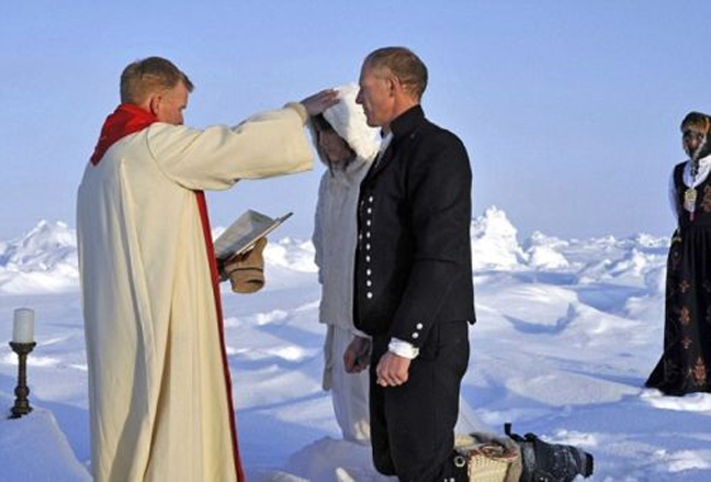 Ο 49χρονος γαμπρός από το Όσλο, χρόνια εξερευνητής του Αρκτικού Κύκλου είχε περάσει πολύ χρόνο από τη ζωή του εκεί και ήταν βαθιά επιθυμία του να τελεστεί το μυστήριο στο πιο ακραίο σημείο της γης.