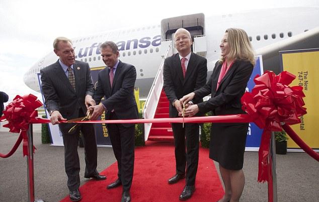 Τα στελέχη της γερμανικής εταιρίας συγκεντρώθηκαν για τη κοπή της κορδέλας στο Έβερετ της Ουάσιγκτον. Το Boeing 747-8 Intercontinental πρόκειται να πραγματοποιήσει τη πρώτη του παρθενική πτήση τη 1η Ιουνίου, από τη Φρανκφούρτη στη Ουάσιγκτον.