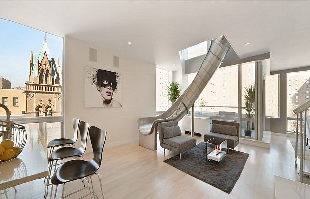 Το διαμέρισμα ανήκει στον 26χρονο Phil Galfond, επαγγελματία παίκτη πόκερ, ο οποίος διέθεσε 250.000 δολάρια για να φτιάξει την τσουλήθρα!