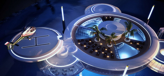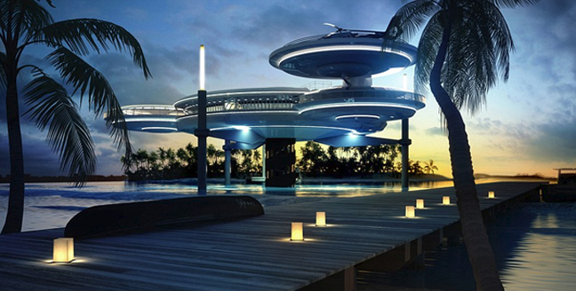 Το «Water Discus Hotel» αποτελεί ένα κτίριο σε σχήμα διαστημοπλοίου και το μισό του τμήμα είναι βυθισμένο μέσα στη θάλασσα. Οι σχεδιαστές της εταιρίας Deep Ocean Technology ευελπιστούν πως το ξενοδοχείο θα εκπληρώσει την επιθυμία των παραθεριστών να εξερευνήσουν τα βάθη των ωκεανών.